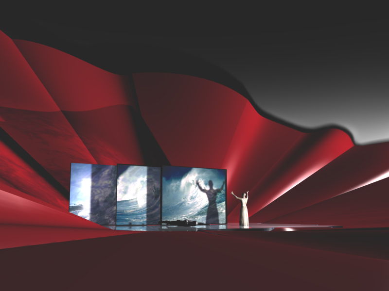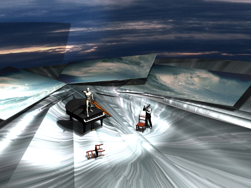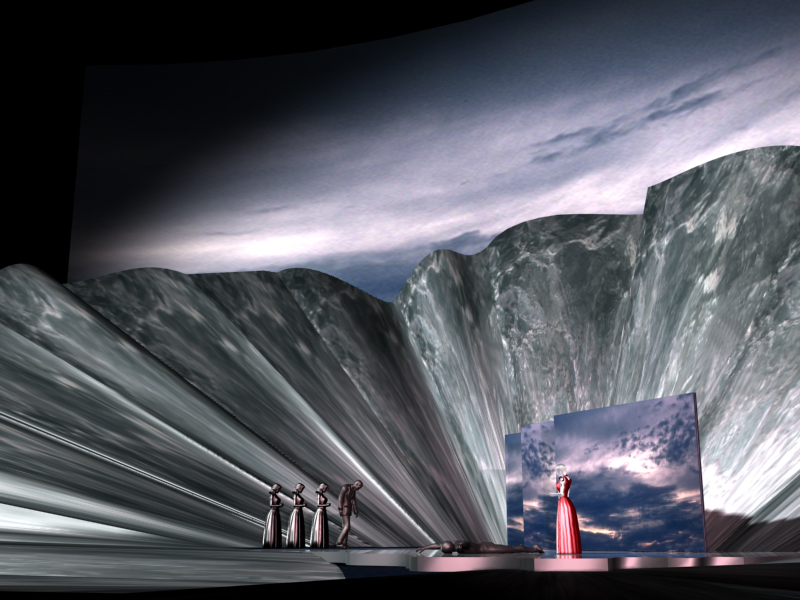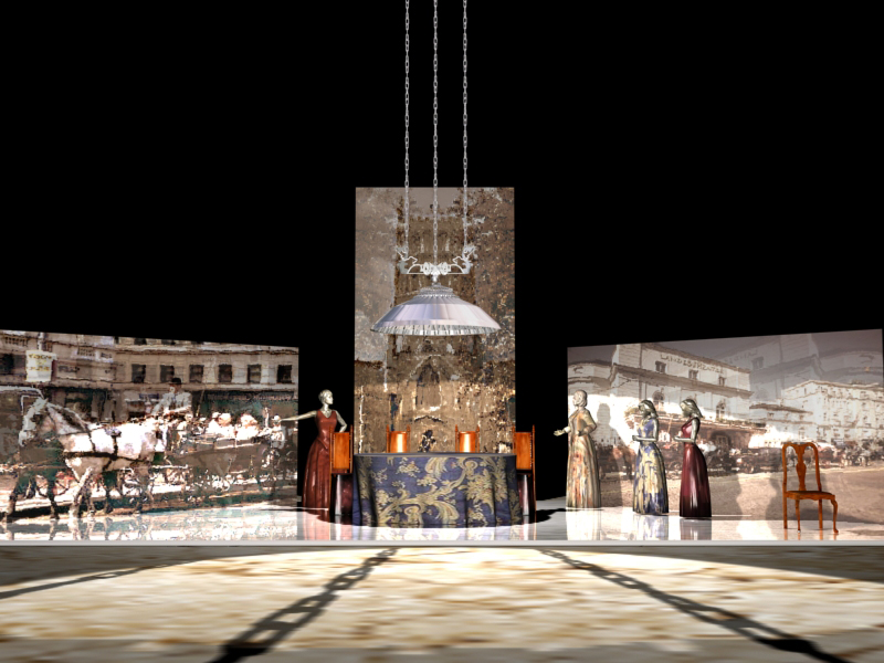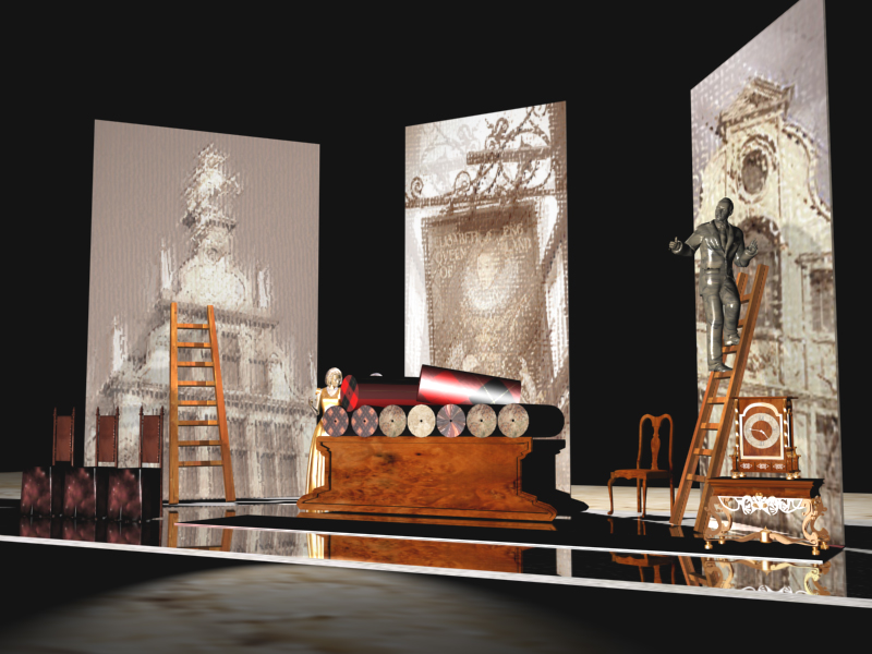 The exhibition presented the works created in the years 2001-2012. In particular, set design sketches, costumes, and installations performed in 3D MAX program / see the article “Manana Gunia’s Virtual theater”.